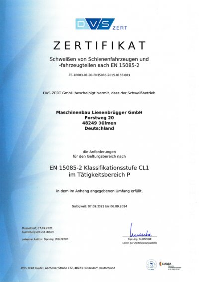 - DIN EN 15085-2 CL1 - Schweißen von Schienenfahrzeugen und -fahrzeugteilen