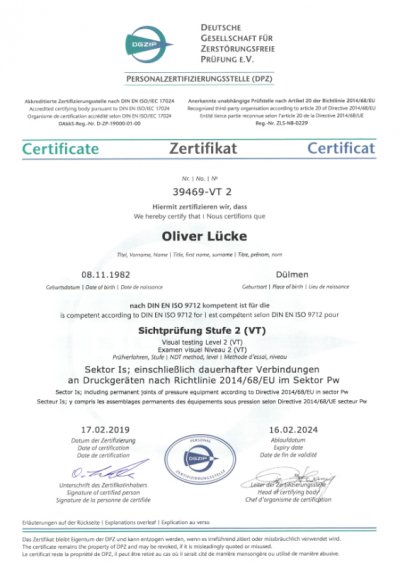 - Prüfpersonal nach DIN EN ISO 9712 VT